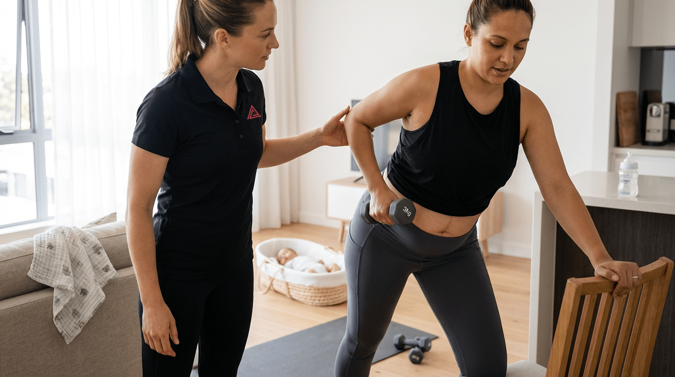 Getting to a gym with a newborn is a logistical nightmare. Nap schedules, feeding times, and the sheer effort of packing a bag. Your postnatal personal trainer comes to you, trains you while baby sleeps in the next room, and works around your actual day.